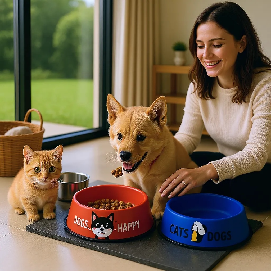 Farklı renk seçenekleriyle mama ve su için kullanılabilir.