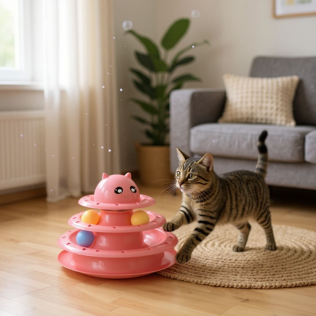 TIEYTI 3 Katlı Kedi Oyuncağı, minik dostunuzun enerjisini atarken aynı zamanda zihinsel ve fiziksel gelişimini destekler. Her katta ayrı dönen renkli toplar sayesinde kedinizin merak duygusunu harekete geçirir, oyun isteğini artırır.