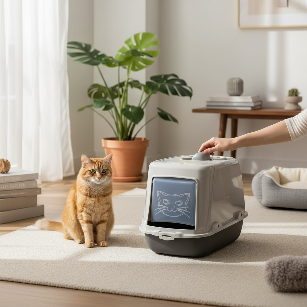 Orta boy ölçüleri ile yetişkin kediler için ideal olan bu tuvalet, kedinizin rahatça girip çıkabileceği ergonomik kapıya sahiptir. Üst kısmındaki taşıma kulpu, pratik hareket ettirme imkanı sağlar.
