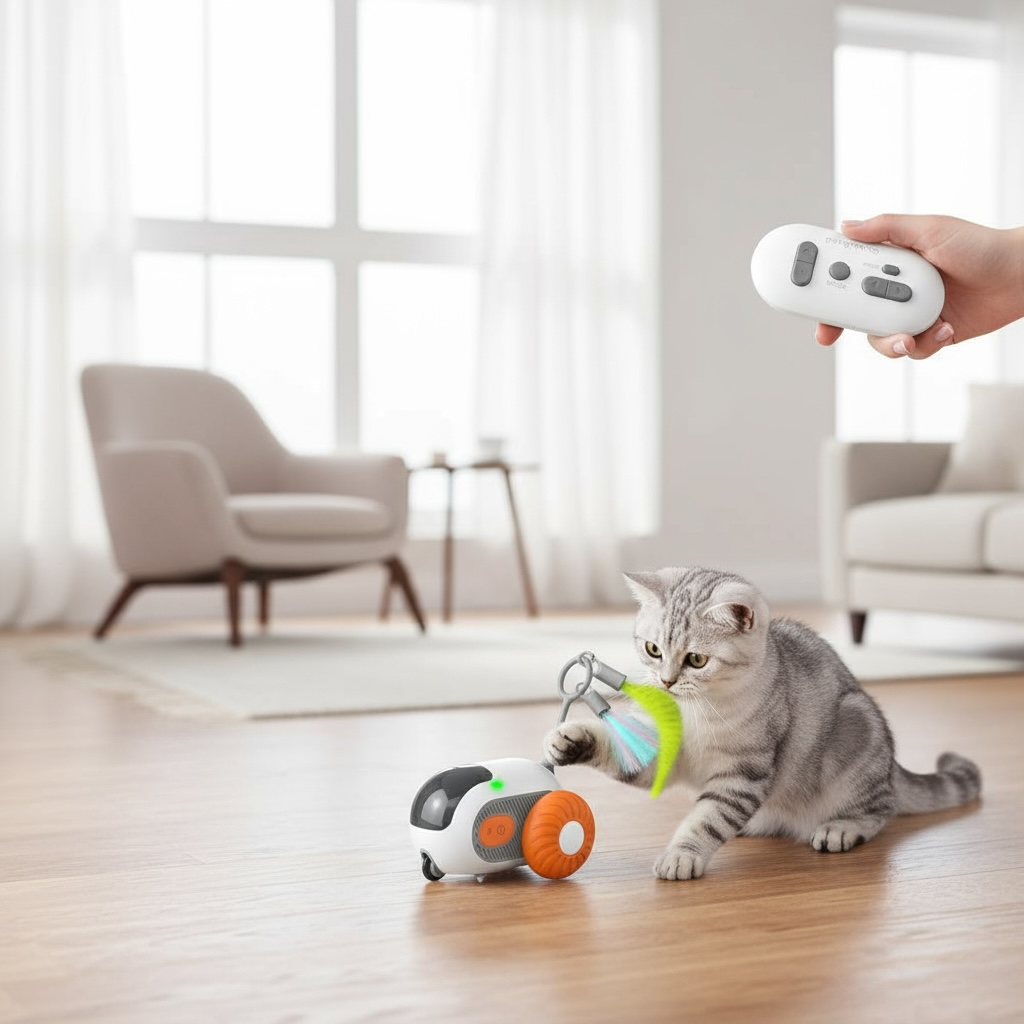 Uzaktan Kumandalı Şarjlı Etkileşimli Kedi Oyuncağı, kediniz için interaktif ve eğlenceli bir oyun deneyimi sunar. Uzaktan kumanda ile yönlendirebilir, üzerindeki sallanan tüy aparatı sayesinde kedinizin av içgüdüsünü harekete geçirebilirsiniz.